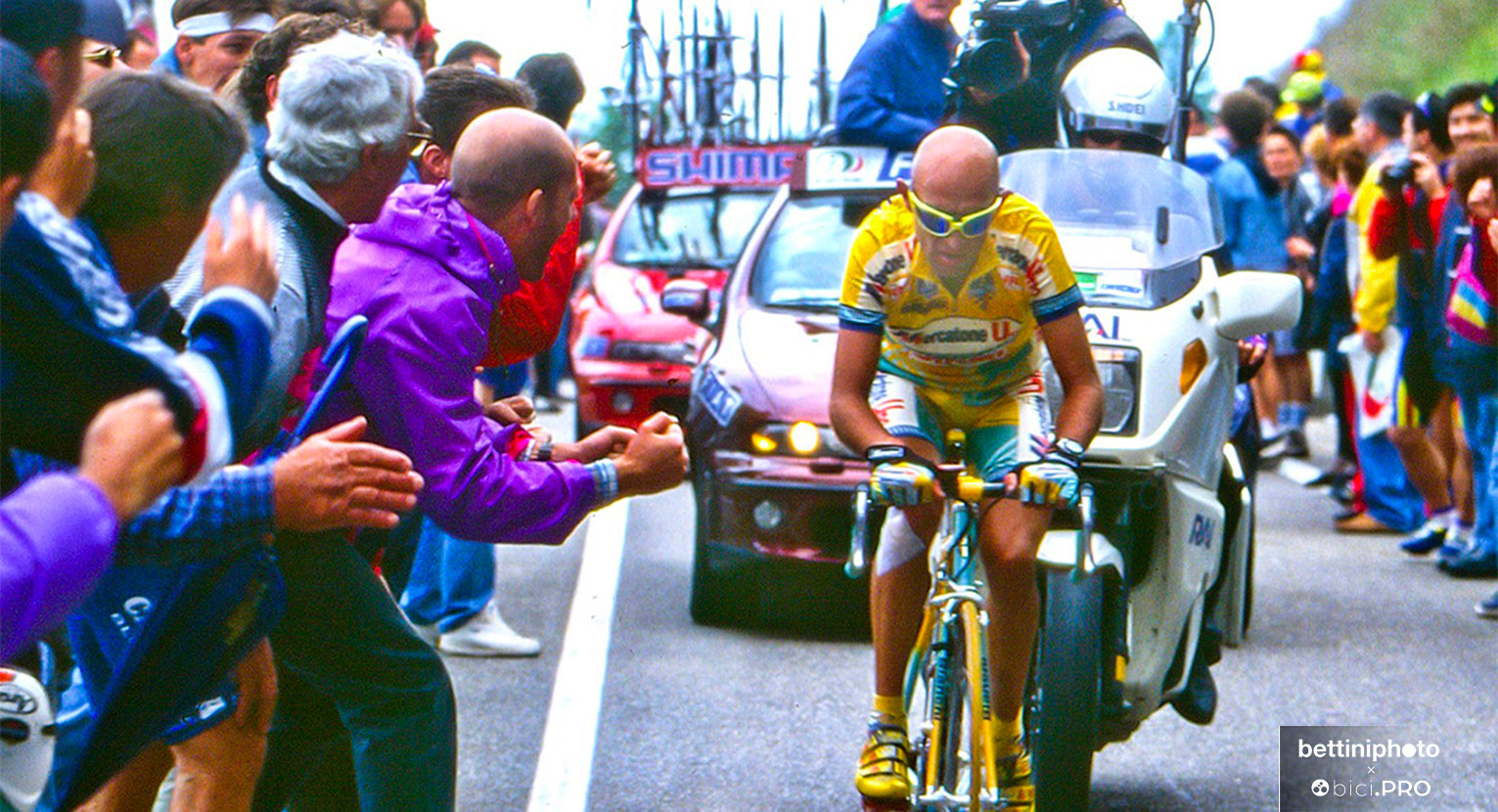 Pantani al Giro d’Italia è come Maradona nella finale dei mondiali. L’Italia si ferma e ne ha motivo. Quando in corsa c’è il Panta e la strada va in salita, è sicuro che lui farà il suo show. Che non è come le smorfie di Virenque o le fughe di Coppolillo. Quando Marco getta via la bandana e mette le mani sotto, significa che sta per attaccare i primi della classifica. Loro lo sanno e si attrezzano per capire come possono per rispondergli. L’anno prima sull’Alpe d’Huez ha spezzato la resistenza di Ullrich e Virenque, mentre Indurain ha smesso di correre da un paio di stagioni e anche lui quel giorno sul Mortirolo capì che sarebbe stato meglio girarsi dall’altra parte e lasciarlo passare.