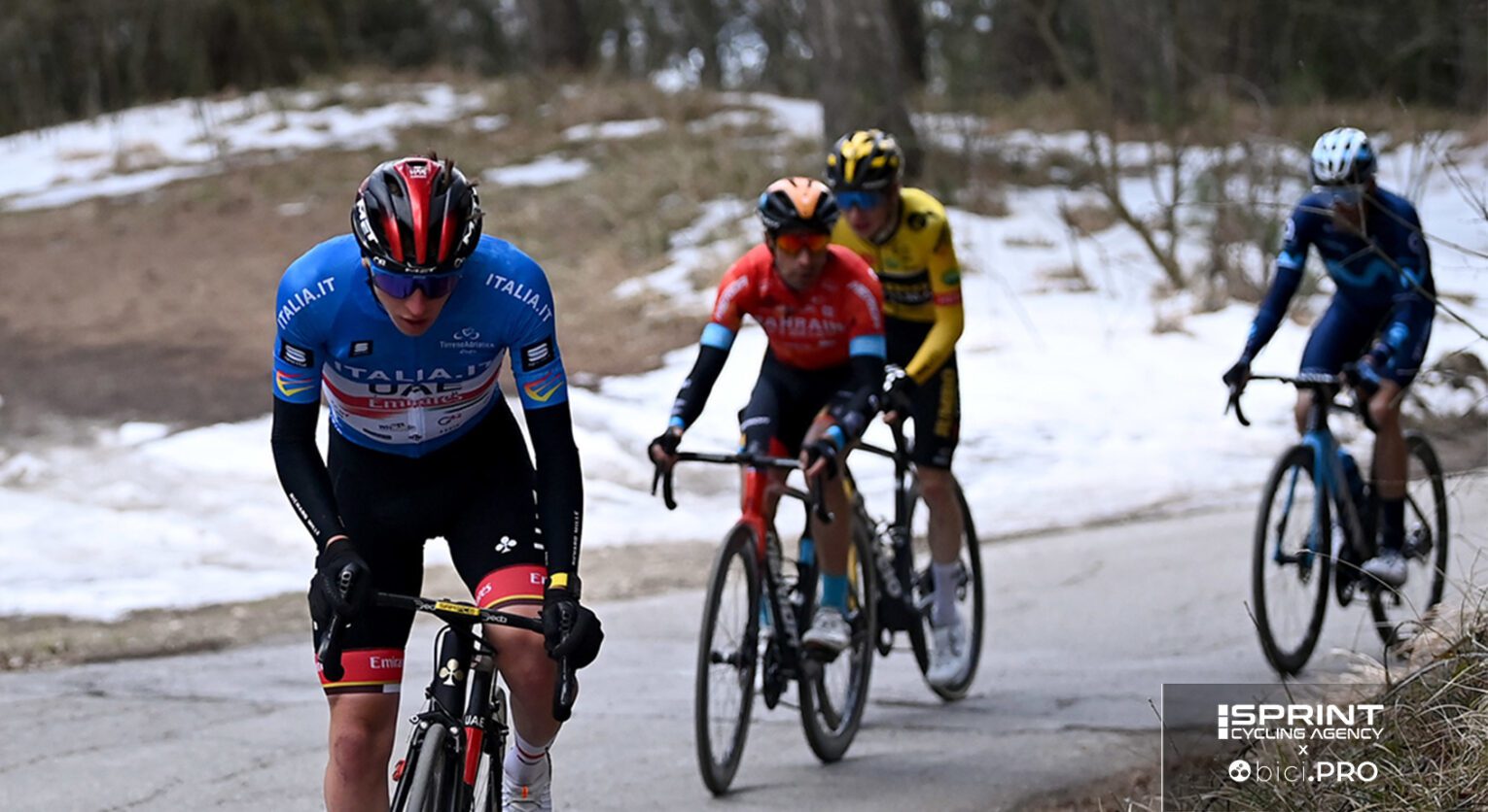 E’ chiaro che fare i paragoni fra corridori di epoche diverse è sempre improponibile, ma qualcosa che accomuna campioni così lontani nel tempo c’è, soprattutto quest’anno che il corridore del Uae Team Emirates sembra non lasciare che le briciole ai suoi avversari ed è dato proprio dall’atteggiamento di questi ultimi. Rispetto agli anni scorsi, sembra che essi si sentano battuti in partenza, che quando Tadej scatta non se la sentano di rispondere (foto di apertura alla Tirreno-Adriatico) e inizino già a pensare al secondo posto.
