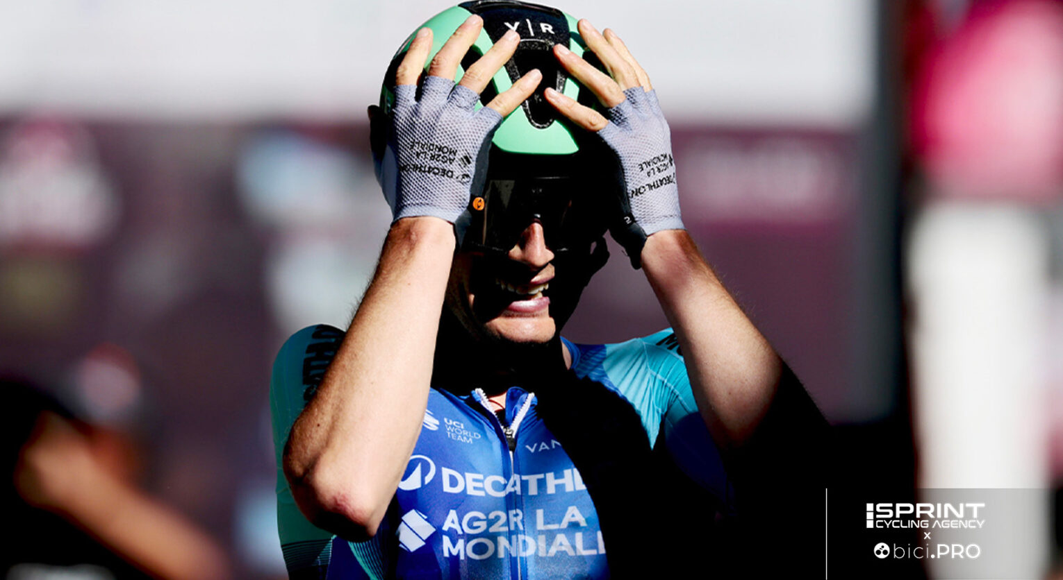 Eppure Prodhomme ha vinto con un numero da incorniciare, soprattutto perché l’idea di partenza era fare esattamente quello che abbiamo visto. Stamattina al via, la Decathlon-AG2R era sui rulli che si riscaldava, evidentemente volevano partire subito forte. Nella prima fuga c’è entrato a circa 110 chilometri dall’arrivo. Poi, dopo una serie di allunghi sul Col de Joux, si è tolto di ruota Verona e Tiberi, gli ultimi superstiti del tentativo del mattino. L’ultimo affondo l’ha portato a 28 chilometri dall’arrivo. E complice l’atteggiamento titubante degli sfidanti di Del Toro, il margine saliva e cresceva, ma non è mai andato sotto i 55 secondi.
