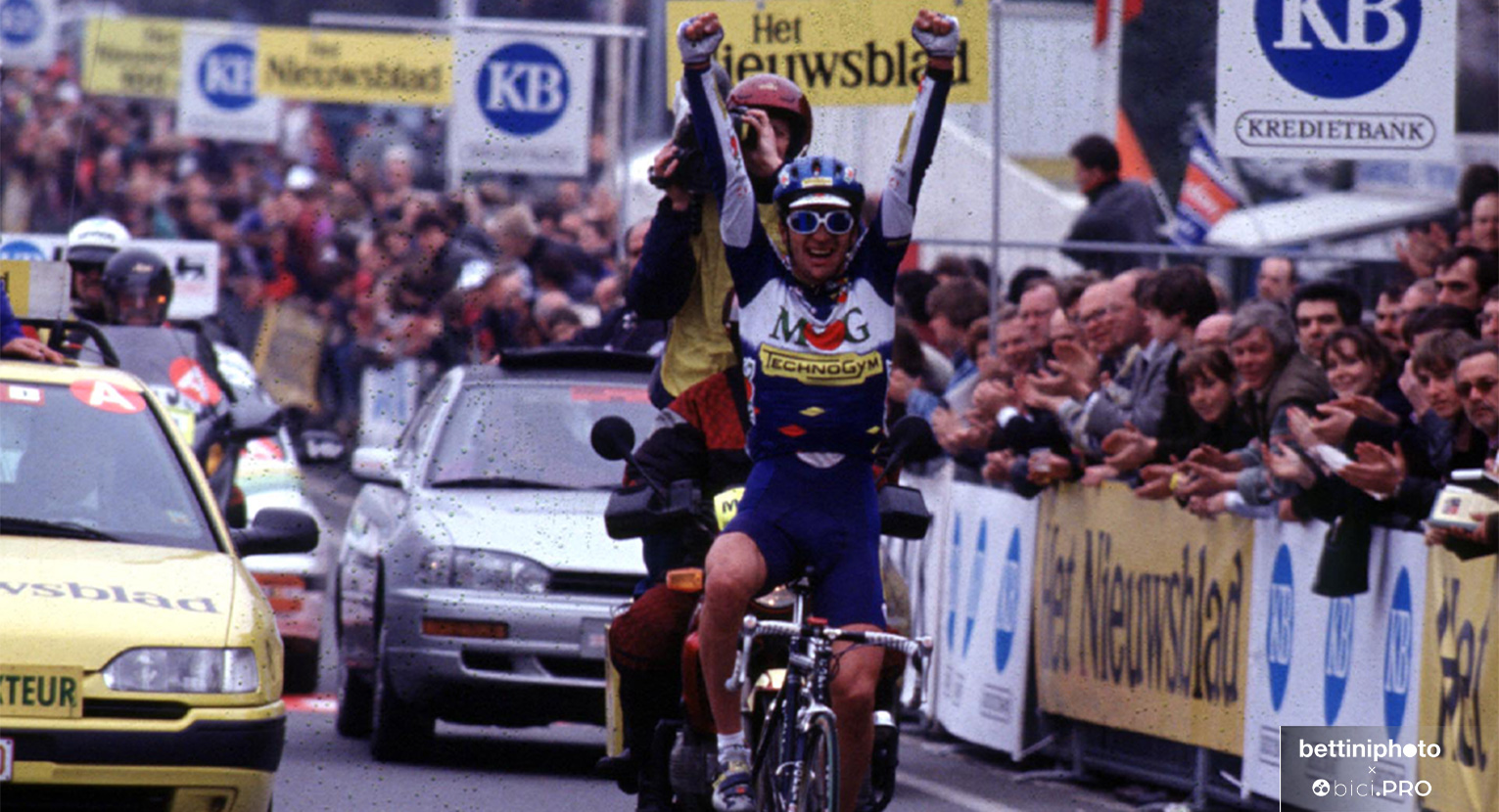 Due anni dopo è la volta di Michele Bartoli, che si consacra specialista delle classiche vincendo la prima delle sue cinque Monumento (foto di apertura). Sul Kapelmuur si scatena, mette in crisi tutti gli specialisti, Museeuw in testa, scollina con una manciata di secondi che andranno progressivamente aumentando, mostrando una supremazia che sa di grandi capacità di affrontare un percorso così particolare, fra muri e pavé.