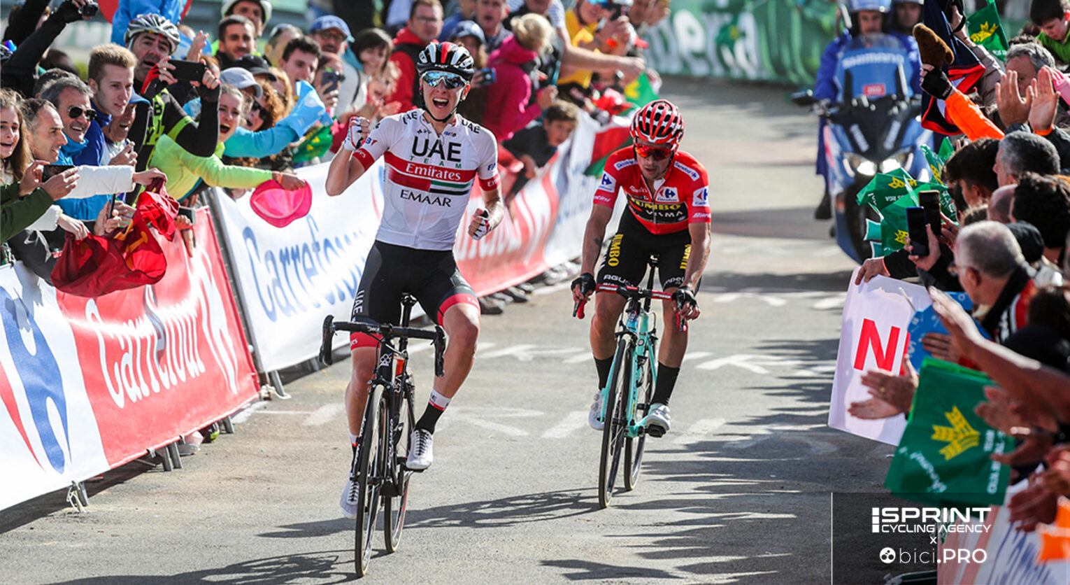 «Chi era presente alla corsa francese – prosegue – ci raccontò di imprese che fecero strabuzzare gli occhi a tanti e di Pogacar si cominciò a parlare con molta frequenza. Noi lo avevamo già contattato e dall’anno successivo era sotto contratto con noi. Appena passato di categoria ci mise poco ad ambientarsi, a vincere anche fra i grandi, soprattutto nelle piccole corse a tappe, conquistando quelle dell’Algarve, della California, ma soprattutto lo faceva con una facilità disarmante, che lasciava attoniti i diesse delle squadre avversarie. Procedeva passo dopo passo, ma si vedeva che stava bruciando le tappe e quindi decidemmo che fosse già maturo per farsi le ossa in un Grande Giro. Così lo portammo alla Vuelta e lì sbocciò il campione che conosciamo».