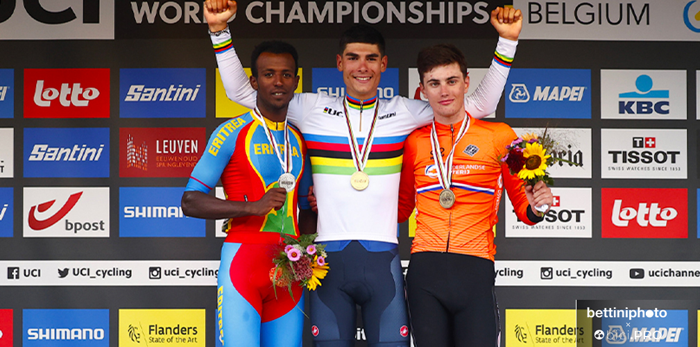 Sul podio piccolo dopo l’arrivo degli under, accanto a Baroncini che sprizzava entusiasmo e addentava la medaglia, Biniam Ghirmay Hailu sembrava fin troppo serio. Per essere il primo eritreo su un podio mondiale, ci saremmo aspettati tutti che saltasse di gioia. Ma a volte la gioia ha altri modi per manifestarsi e la sua già dopo l’arrivo aveva iniziato a scavargli dentro.