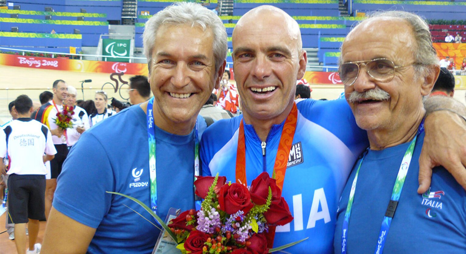 Il mondo Paralimpico è difficile da capire. Capita anche che arrivino nuovi atleti che meritano una classificazione, ma il cui inserimento in una categoria stravolga i valori e le forze in gioco nella stessa. Oggi, nella C5, la categoria dove correva Fabio, senza due braccia che tengano saldamente il manubrio in volata non puoi più essere competitivo. Così, alla vigilia dei Giochi di Londra, Mario Valentini ha chiesto a Fabio di passare la mano, di agganciare il gruppo come suo Collaboratore e oggi si occupa di noi.