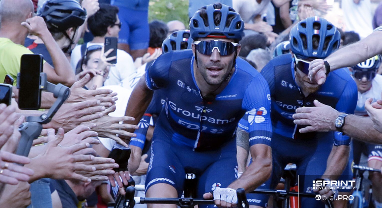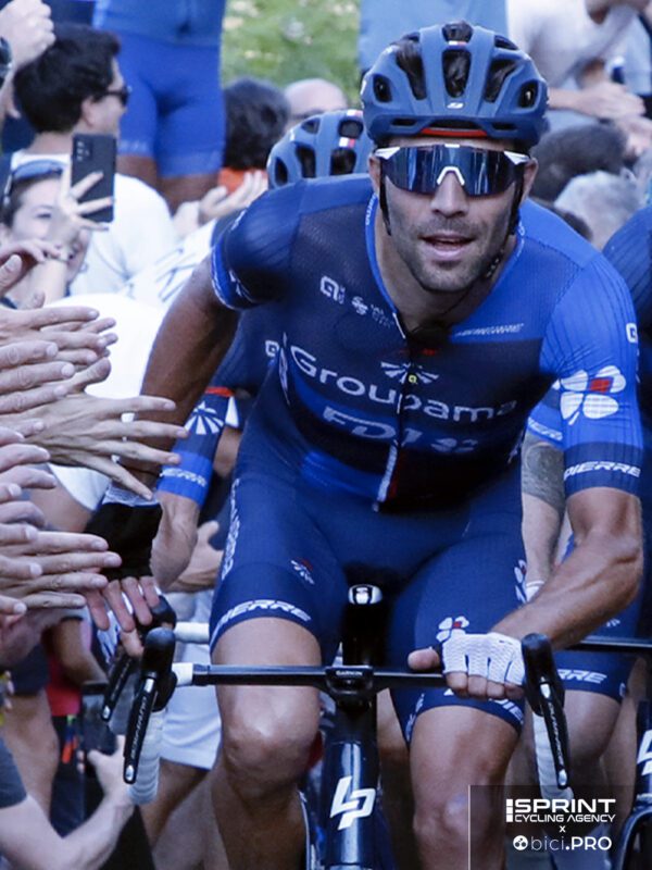 Sin dalla partenza da Como è iniziata la sua celebrazione. Tanto che la corsa è partita con un po’ di ritardo proprio per l’abbraccio che gli è stato fatto. E mentre la folla lo applaudiva, dietro le quinte, o per meglio dire ai bus c’era il suo padre putativo che era visibilmente commosso, Marc Madiot.