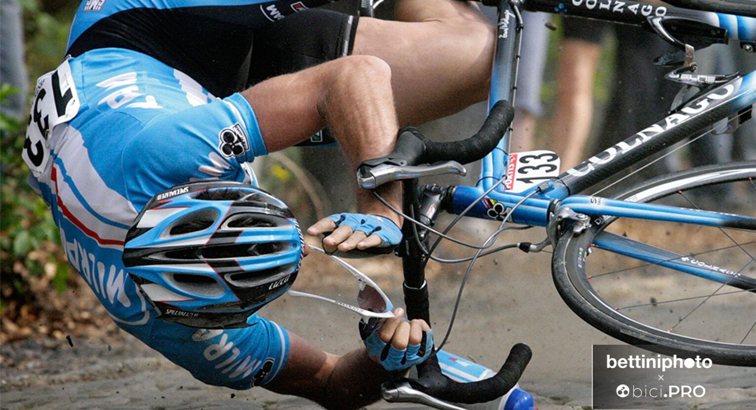 Mi andò via la ruota davanti, fu una grande caduta e pensate che quella di Casper del giro prima non l’avevo nemmeno notata nel caos più totale. Lì per lì, malgrado i dolori, pensavo di non essermi fatto nulla, non mi rendevo conto delle botte. Ma nel momento in cui ho provato a piegare il ginocchio destro per rimettermi in piedi, ho sentito un click che mi ha un po’ preoccupato. Ho immaginato qualcosa di serio alla rotula, però c’era anche la clavicola destra fratturata e due costole rotte che mi avevano perforato un polmone. Ho avuto subito pensieri di ogni tipo, tutti negativi. Ho capito che avrei dovuto saltare il Giro d’Italia e buona parte della stagione. Fui portato via in ambulanza all’ospedale di Gand, dove rimasi per tre giorni prima di tornare in Italia, sempre in ambulanza, poiché non potevo volare per il danno al polmone.