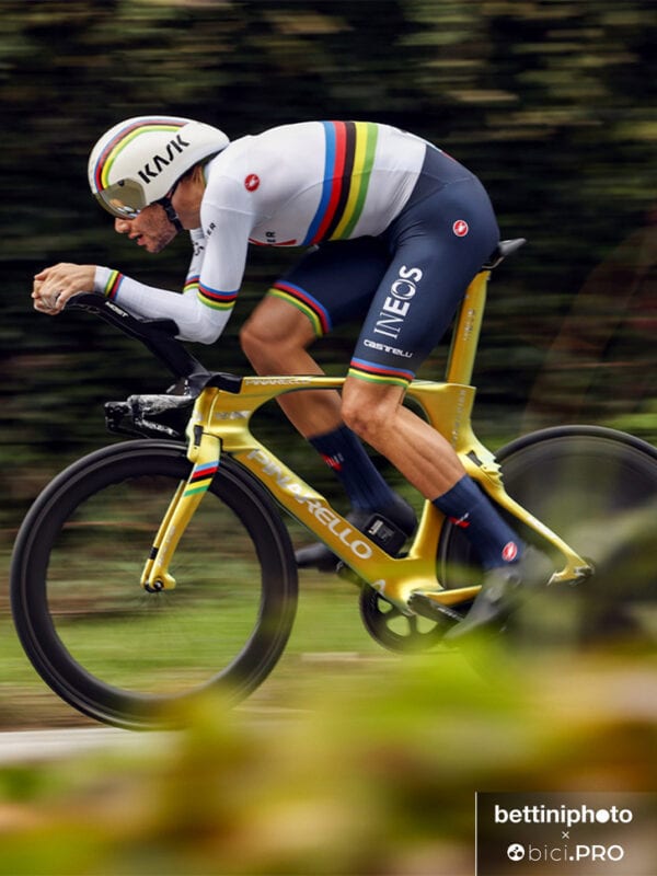 «Conta moltissimo la ruota in una cronometro e i test che facciamo sono tutti mirati. Non è detto che questo set che utilizziamo sulla Pinarello Bolide sia altrettanto performante su un’altra bici. Noi proviamo tutto il pacchetto, persino i body Castelli. In tanti hanno cercato di capire che ruote fossero. Somigliano molto alle Vision. Persino i loro tecnici sono venuti a chiederci se fossero o meno le loro».