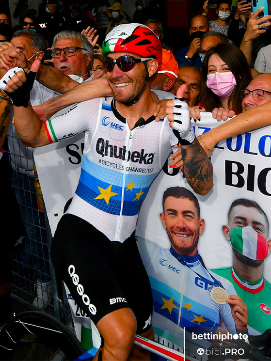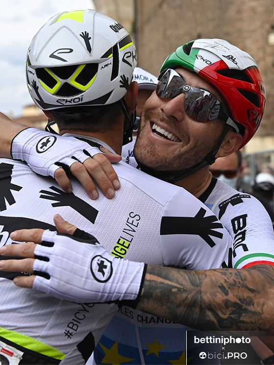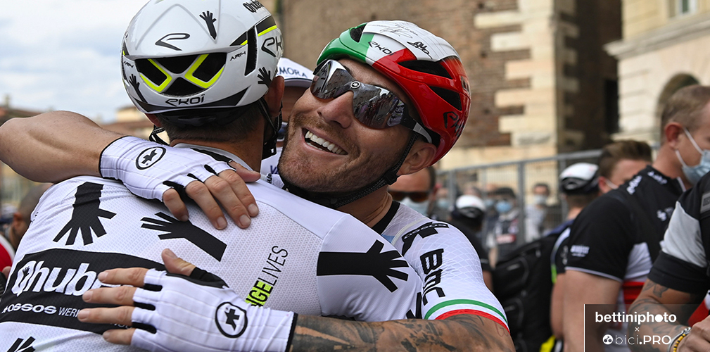 Mentre Nizzolo veniva scortato verso il palco, nel marasma dopo l’arrivo i suoi compagni del Team Qhubeka-Assos si abbracciavano con uno slancio raro a vedersi. La squadra aveva già vinto due giorni fa la tappa di Montalcino con Schmid e la volata con il milanese ha prolungato il momento pazzesco per un team rinato dal poco, che nei giorni scorsi aveva perso con Pozzovivo l’uomo per la classifica. Mentre raccontava il finale ai colleghi belgi, Campenaerts è parso commuoversi. Quando lo raccontiamo a Giacomo, anche lui ha il groppo in gola.