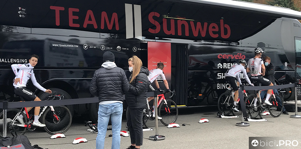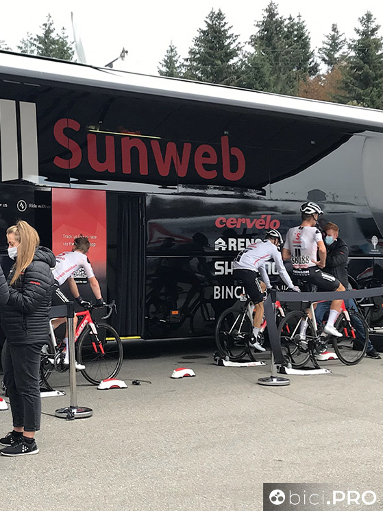 Dopo l’arrivo il biondino salta sui rulli per il defaticamento. Di tutto il suo team sembra quello più fresco. Scherza con una ragazza dello staff ed è visibilmente soddisfatto. Ha svolto un ottimo lavoro per il suo capitano. E lo sa.