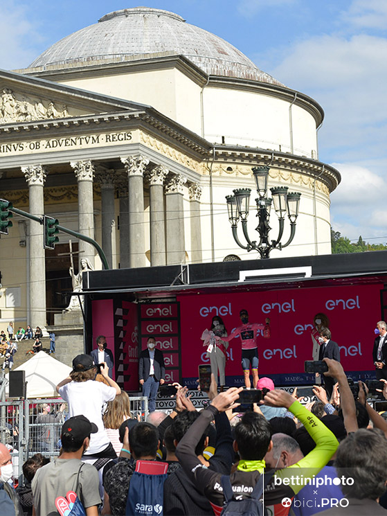 Quando sul traguardo di Torino è passato l’arcobaleno, la gente è esplosa in un boato. Sì, la gente. Tanta e contenta, con la mascherina e la voglia di applaudire tutti i corridori del Giro, ma soprattutto Filippo Ganna. Perché quando un nome lo senti circolare lungo la strada e lo senti ripetere quando sta per passare, come in un colossale passaparola di 9 chilometri, significa che il ragazzo con la maglia iridata è ormai entrato nei cuori.
