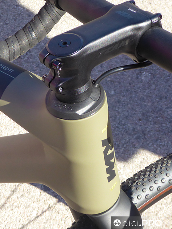 C’è il comparto manubrio in alluminio KTM e ci sono le ruote Mavic del segmento all-road (gommate Continental), anche queste con cerchio in lega e specifiche per il gravel. La sella è di Selle San Marco.