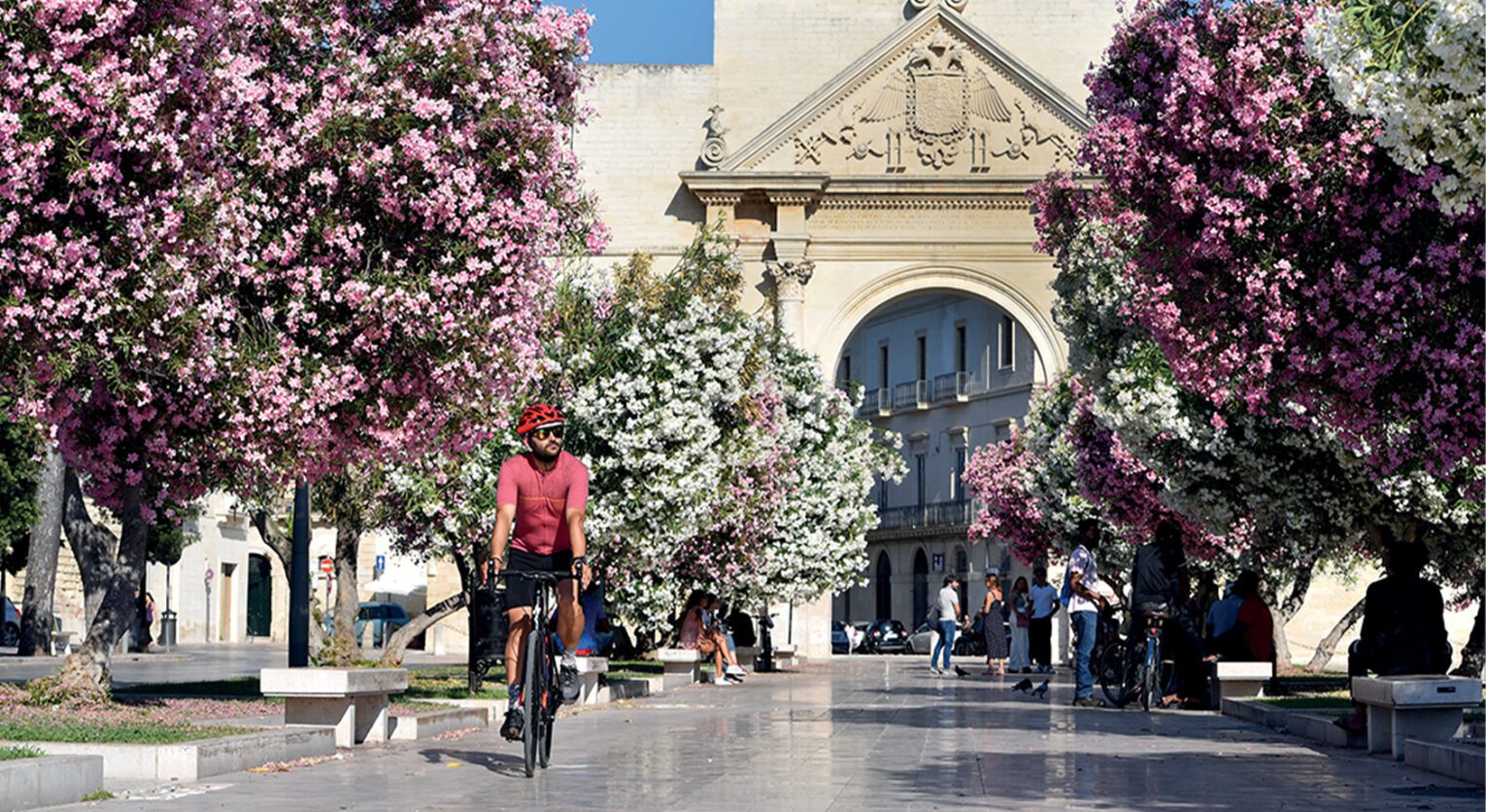 Abbiamo ammirato la magnificenza della Daunia, la natura viva del Gargano, la quiete del Tavoliere, ci siamo riflessi sulle rive della Costa Imperiale e attraversato le meraviglie di Murgia, Gravine e Valle d’Itria. Siamo arrivati al tacco dello stivale, nel punto più orientale d’Italia. Ecco il Salento, il luogo dove la bici e le bellezze pugliesi trovano l’epilogo di una vacanza in sella. We are in Puglia, dove le due ruote trovano itinerari unici e dove la tradizione e la cultura accolgono il cicloturista a braccia aperte. Saliamo di nuovo in sella e impariamo a conoscere questo angolo circondato dal mare e costellato di meraviglie.