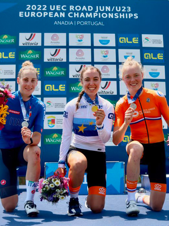 Per questo nel 2023 seguirà la grande Marianne Vos nel team di riferimento del ciclismo olandese, la Jumbo Visma, puntando a far bene già nelle classiche di primavera. Molti la paragonano a Van Der Poel, invece ci sono riferimenti che l’assimilano a Evenepoel: come l’iridato belga, anche la Van Empel ha iniziato tardi ad andare in bici. Prima si dedicava al calcio, nell’RKSV Nuenen e ci sapeva anche fare, tanto che gli osservatori della sezione femminile del Bayern Monaco l’avevano già segnalata. Utilizzando la bici d’inverno per tenersi in forma, Fem si è però appassionata e ha scelto di cambiare, trovando nei genitori pieno sostegno.