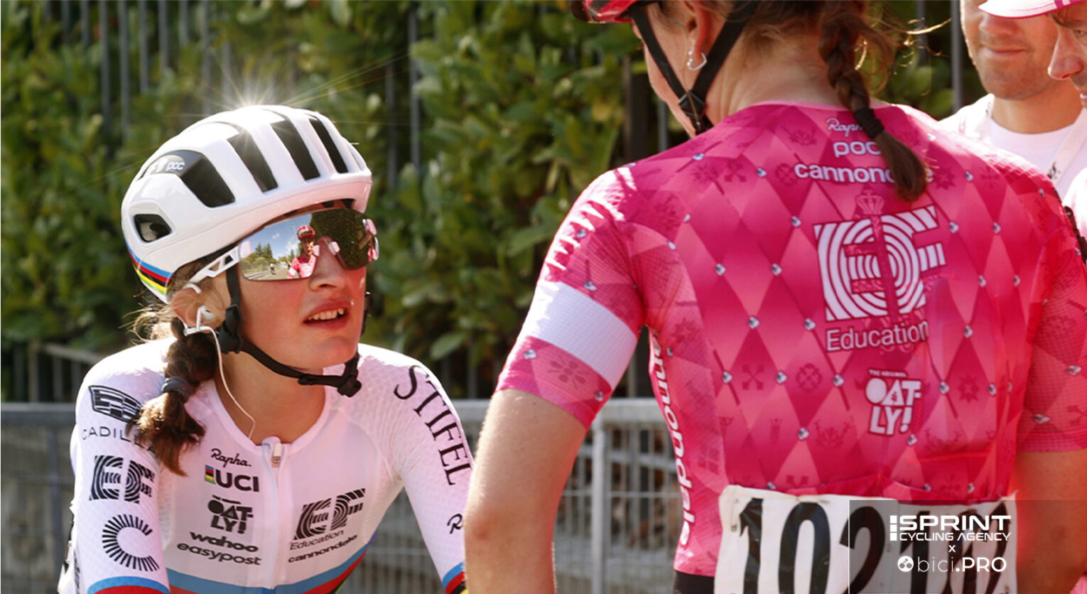 Mentre Magdeleine Vallieres sorprendeva tutti a Kigali, andando a conquistare un titolo mondiale che rappresenta una delle più grandi sorprese sportive di quest’anno, dall’altro emisfero Letizia Borghesi faticava a trattenere le lacrime di commozione. Compagne di squadra? No molto di più, amiche del cuore, attraverso un legame che si è andato costruendo negli anni. Sin dall’approdo dell’azzurra all’EF Education Oatly, quando il suo inglese era ancora zoppicante e la canadese l’ha aiutata, supportata, rendendole più facile tutto il suo approccio.