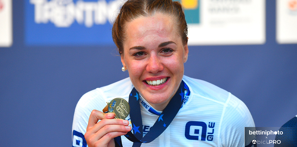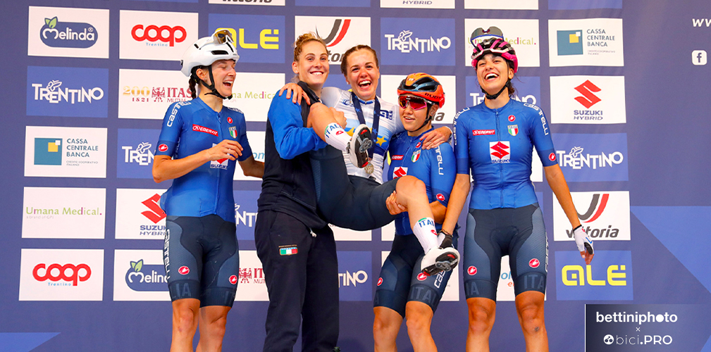 Se è vero che l’emozione non ha voce, è altrettanto vero che l’emozione viaggia e si fa sentire come un’onda d’urto dal proprio epicentro. Piazza Duomo di Trento diventa elettrizzata quando il maxischermo e la voce degli speaker annunciano l’imminente arrivo delle tre fuggitive della gara riservata alle donne under 23. Una di loro è italiana e sulla carta ha buone possibilità di vincere. E se lo meriterebbe anche perché sa farsi volere bene, oltre ad essere un talento ancora da sgrezzare. Ora ci siamo, gli ultimi 100 metri sono praticamente una formalità e i successivi 100 sono uno sfogo per una gioia incontenibile.