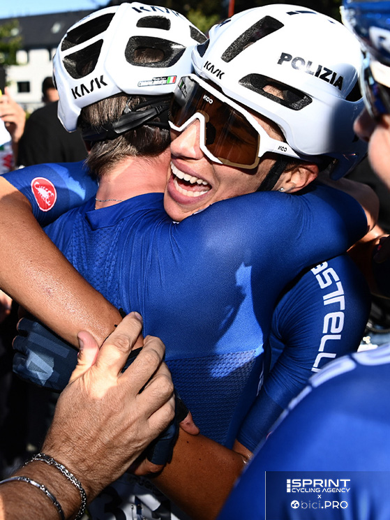 A livello personale non sono stata una gran vincente, i miei più grandi risultati li ho tenuti in pista, a partire dai due titoli europei consecutivi nella corsa a punti. Poi però ho avuto la fortuna di partecipare a tutte le più grandi gare e negli ultimi anni ad essere di supporto alle mie compagne. Penso che il giorno più bello in assoluto sia stato quando Elisa Balsamo ha vinto il titolo mondiale. In quella che è stata una giornata perfetta. E’ vero che sul podio non c’ero io, ma quel titolo l’ho sentito anche mio. L’esempio di quando la tua compagna vince perché tu lavori per qualcosa e contribuisci.