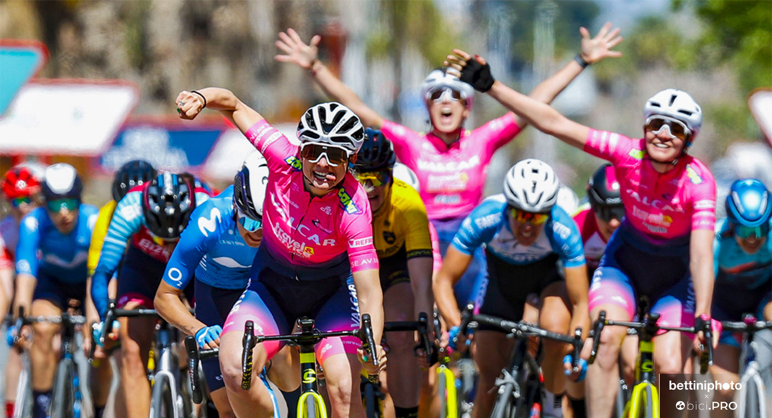 Guardate la gamba nella foto della volata e per una volta lasciate stare la lingua fra i denti, che è il suo marchio di fabbrica. Adesso Chiara Consonni ha la gamba da atleta vincente. E quando ieri le rivali alla Vuelta CV Feminas, che sarebbe la Valenciana della donne, se ne sono rese conto, non è rimasto loro che mettersi in fila. Forse qualcuna lo aveva intuito anche prima, in realtà. Tanto che le ragazze della Movistar hanno fatto le furbe e lasciato alla Valcar-Travel&Service tutto il peso dell’inseguimento. Ma quando ai meno dieci il gruppo è tornato compatto, si è capito che nessuna sarebbe sfuggita alla volata. E a quel punto… prima Consonni, seconda Guarischi, terza Lebail, quarta Bulleri, quinta Alzini.