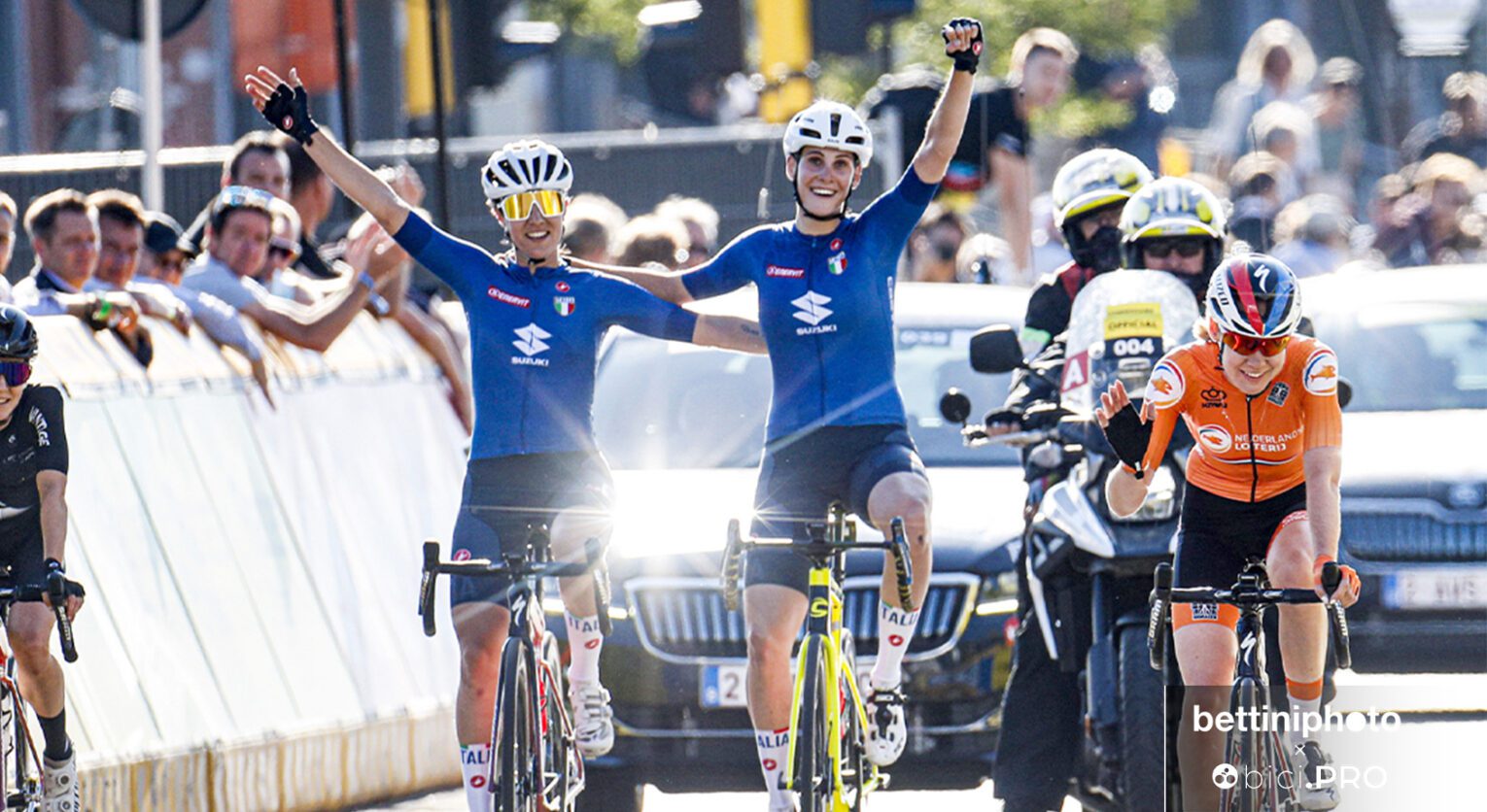 Vittoria Guazzini non è certo un ragazza che nasconde le sue emozioni. Già prima di finire la sua gara, sull’arrivo di Leuven, era tra le più gasate per la vittoria di Elisa Balsamo. La “Guazz” e la Balsamo sono compagne di squadra alla Valcar e non solo in nazionale, ma il loro legame ha radici più profonde. Sono stati tanti i ritiri isieme, già nelle categorie giovanili, le gare fianco a fianco su strada e in pista (soprattutto nella Madison) che neanche la stessa Guazzini ricorda il momento preciso del loro primo incontro.