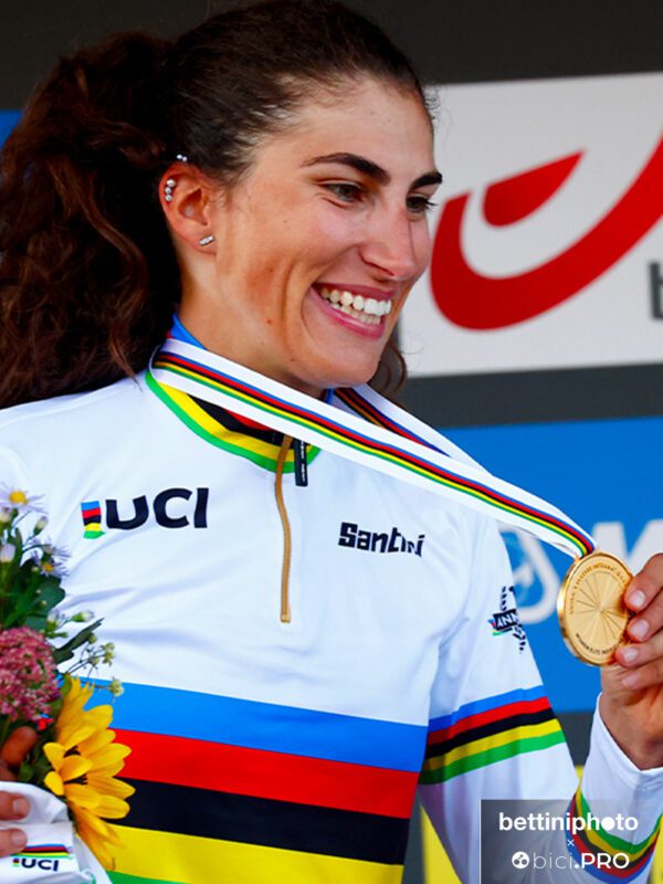 «Sono due maglie completamente diverse – dice – quella da junior è bella, te la godi ed è lo stimolo per lavorare di più e crederci tanto. Ma questa è molto più importante. Ed è per sempre. Faccio fatica a pensare a quello che sarà il prossimo anno, a cosa saranno le prossime corse. So che farò la Roubaix e so che il prossimo anno andrò in un team WorldTour da campionessa del mondo. Ma non voglio pensarci ora, voglio pensare alla mia squadra: la Valcar&Travel Services. Penso e spero che questa maglia serva a fare il salto di qualità e a trovare nuovi sponsor per diventare ancora più grande».