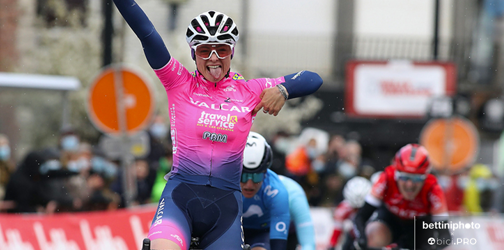 Sorridente sul podio della Valenciana, vinta il 18 aprile Così il 5 aprile, all’indomani del Fiandre, alla Ronde de Mouscron. Fuori la lingua Questo invece il podio dopo la vittoria della Valenciana