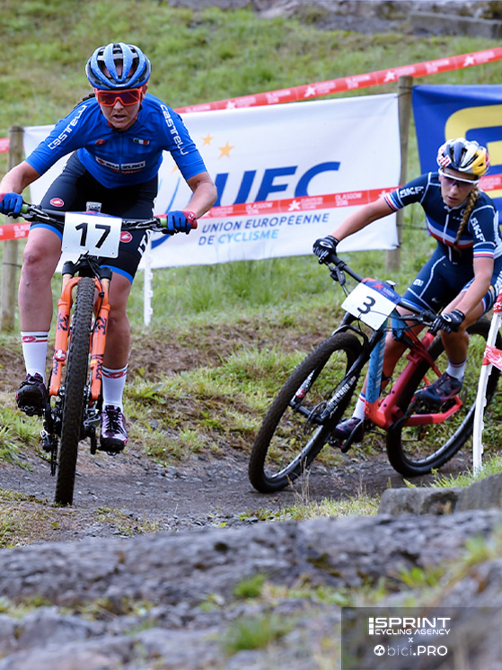 Eva Lechner e Pauline Ferrand Prevot agli europei in MTB del 2018. Quante volte si sono scontrate in carriera…