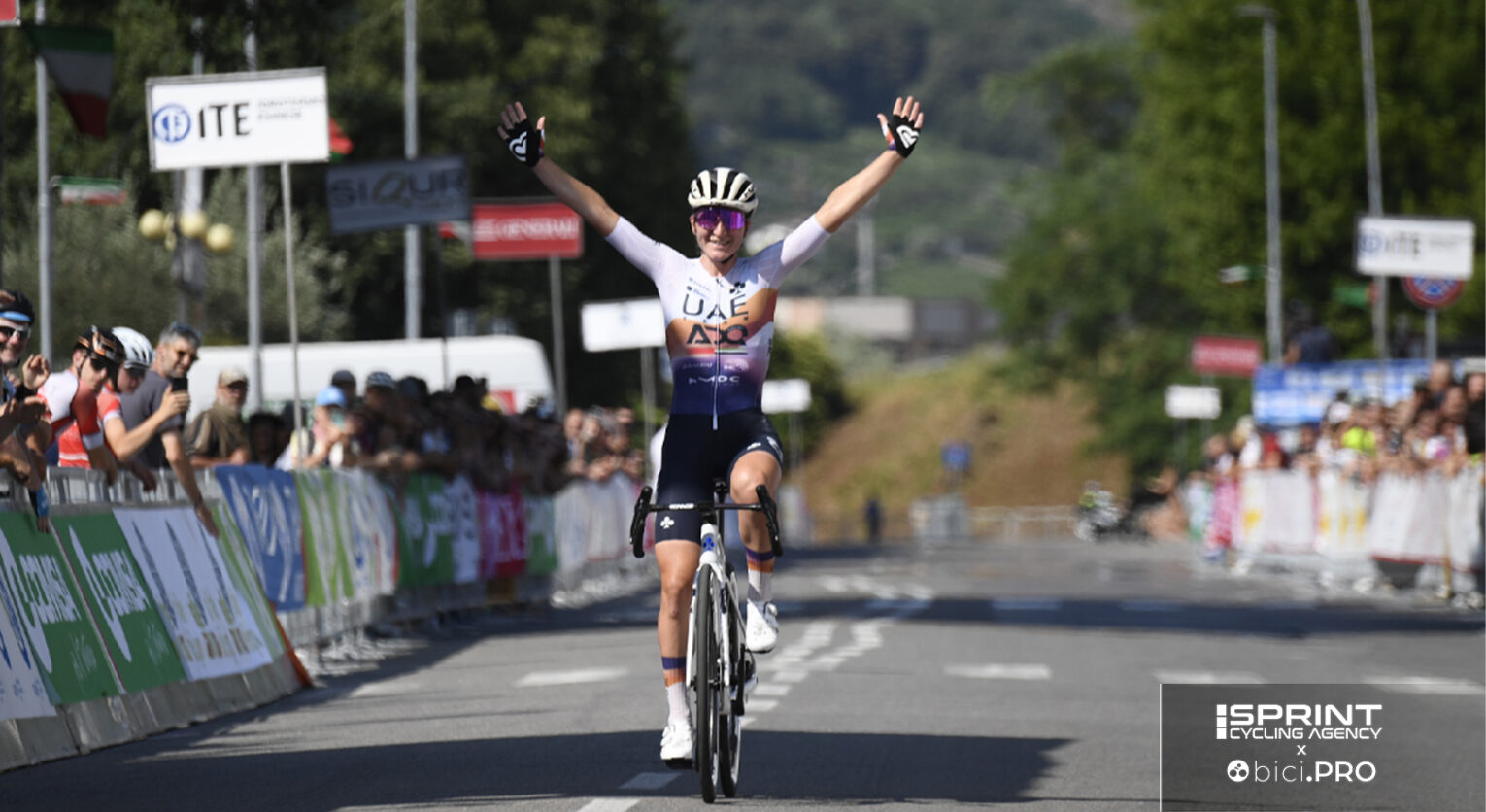 Il UAE team ADQ questa mattina nella piazza dove si è tenuta la presentazione delle squadre, e poi la premiazione finale, era l’unica squadra ad avere il pullman. La formazione emiratina è arrivata con la consapevolezza di avere l’atleta più forte in gruppo e una squadra di altrettanto valore pronta a darle sostegno. La corsa è sempre stata nelle loro mani, complice la superiorità numerica, e quando è arrivato il momento di fare selezione Longo Borghini ha fatto quello che le riesce meglio, terminare il lavoro con una vittoria.