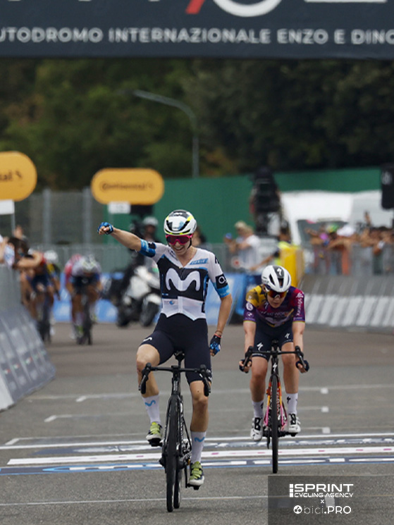 Sul traguardo posizionato all’interno dell’autodromo “Enzo e Dino Ferrari” – il medesimo del mondiale 2020 – Lippert concede il bis come ci aveva anticipato che avrebbe tentato di fare dopo il sigillo di Terre Roveresche di venerdì. La tedesca della Movistar batte una rediviva Van der Breggen che nel finale di tappa aveva allungato in fondo alla Gallisterna, col gruppo delle big ad 8” regolato da Reusser davanti a Longo Borghini. Cinquanta metri dopo la linea Elisa allunga la mano all’avversaria per un autentico «Brava Marlen».