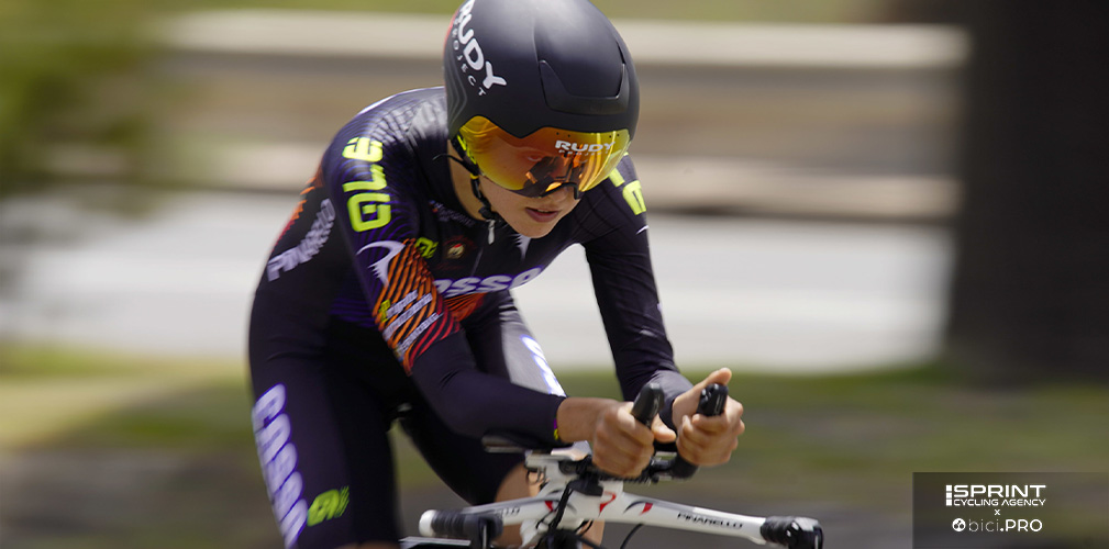 Qui a Chambery dove Marturano ha chiuso in 6ª posizione (foto Zoe Soullard) Marturano è una scalatrice ma possiede anche un discreto spunto (foto Ossola) Greta Marturano impegnata nella crono d’apertura al Giro Donne