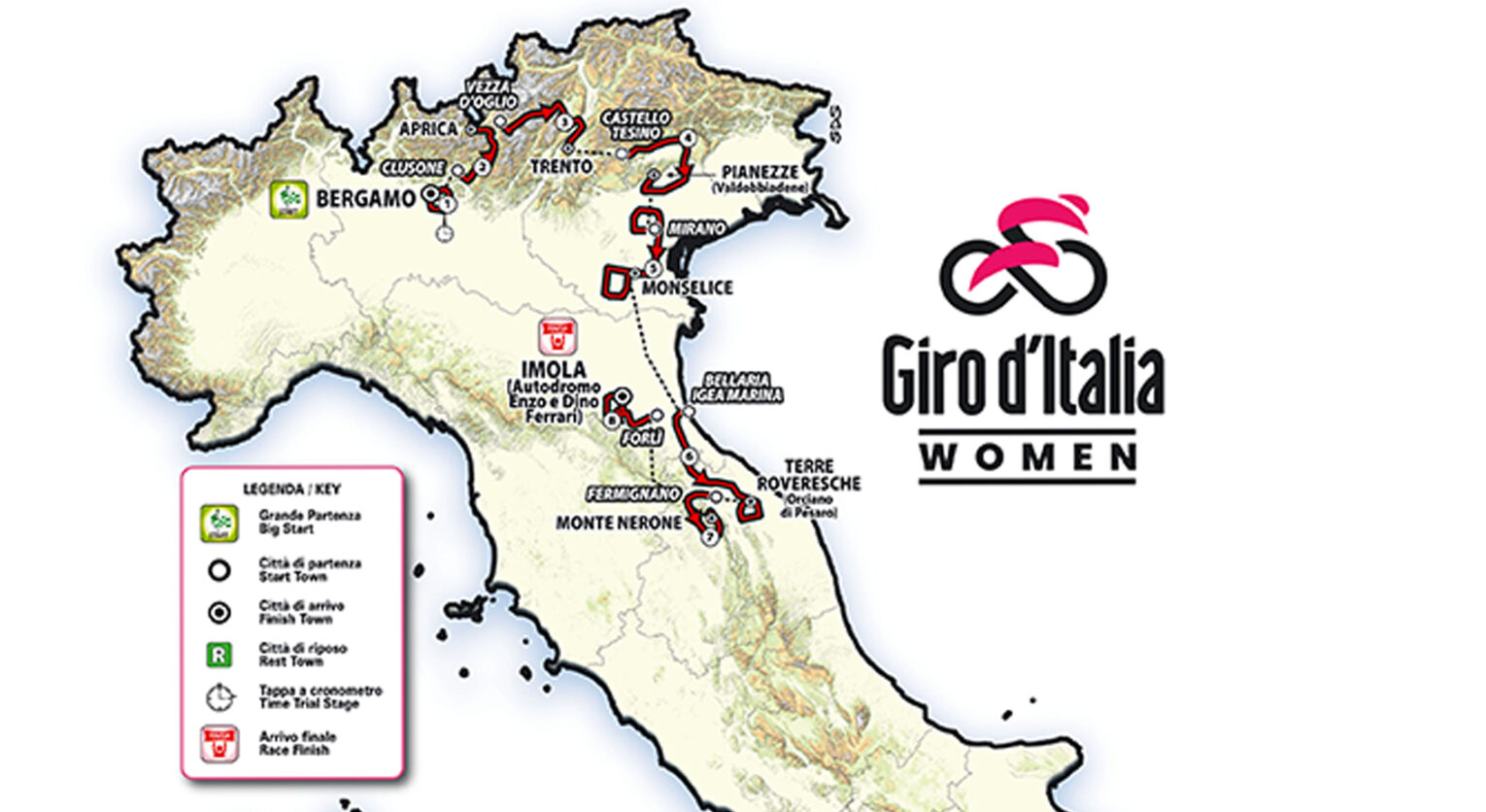 La cronometro iniziale di Bergamo sarà importante, come le sono tutte le prove contro il tempo ovunque vengano messe. L’arrivo dell’Aprica è una salita pedalabile. Le più forti si daranno già battaglia, ma potrebbero arrivare in un gruppo piuttosto nutrito. La terza tappa che arriva a Trento sarà quasi certamente per velociste, anche se il Tonale in avvio potrebbe scombinare qualche piano e strizzare l’occhio a qualche tentativo da lontano. Il traguardo in salita di Pianezze sarà il primo vero spartiacque. A differenza del primo arrivo in salita dell’anno scorso a Toano dove si era affrontata tanta pianura, stavolta ci saranno continui saliscendi ed un chilometraggio importante. Quel giorno potrebbe esserci il primo scossone in classifica.