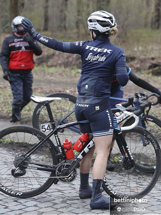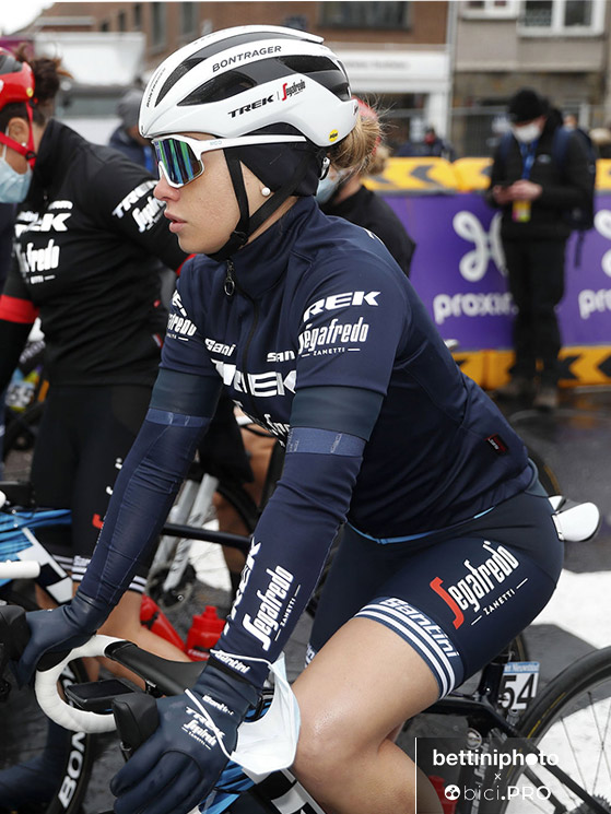 Adesso sto usando l’Emonda, perché mi trovo molto bene. Lo scorso anno prediligevo la Madone, però con la nuova Emonda mi sono trovata subito molto bene. E’ più leggera rispetto alla Madone ma è reattiva quasi, se non allo stesso modo della Madone.