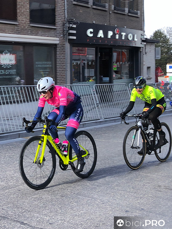 Al suono della campana, Chiara è a centro gruppo a stringere i denti come tutte le altre. Il circuito misura 12,5 chilometri con tre blandi dislivelli e l’arrivo nella Grand Place. Non è tanto per la corsa in sé quanto per il fatto che si corra all’indomani della sfacchinata del Fiandre. Però quando hai talento e nelle gambe 3 mondiali e 6 europei su pista, non può essere certo una rampetta del genere a farti paura. E infatti quando dalla curva in fondo spuntano le prime ragazze, la maglia rosa fluo della Valcar è già in testa con una bicicletta di vantaggio. Il gioco è riuscito alla grande. La Valcar ha tenuto il gruppo cucito e la Movistar ha fatto il resto.