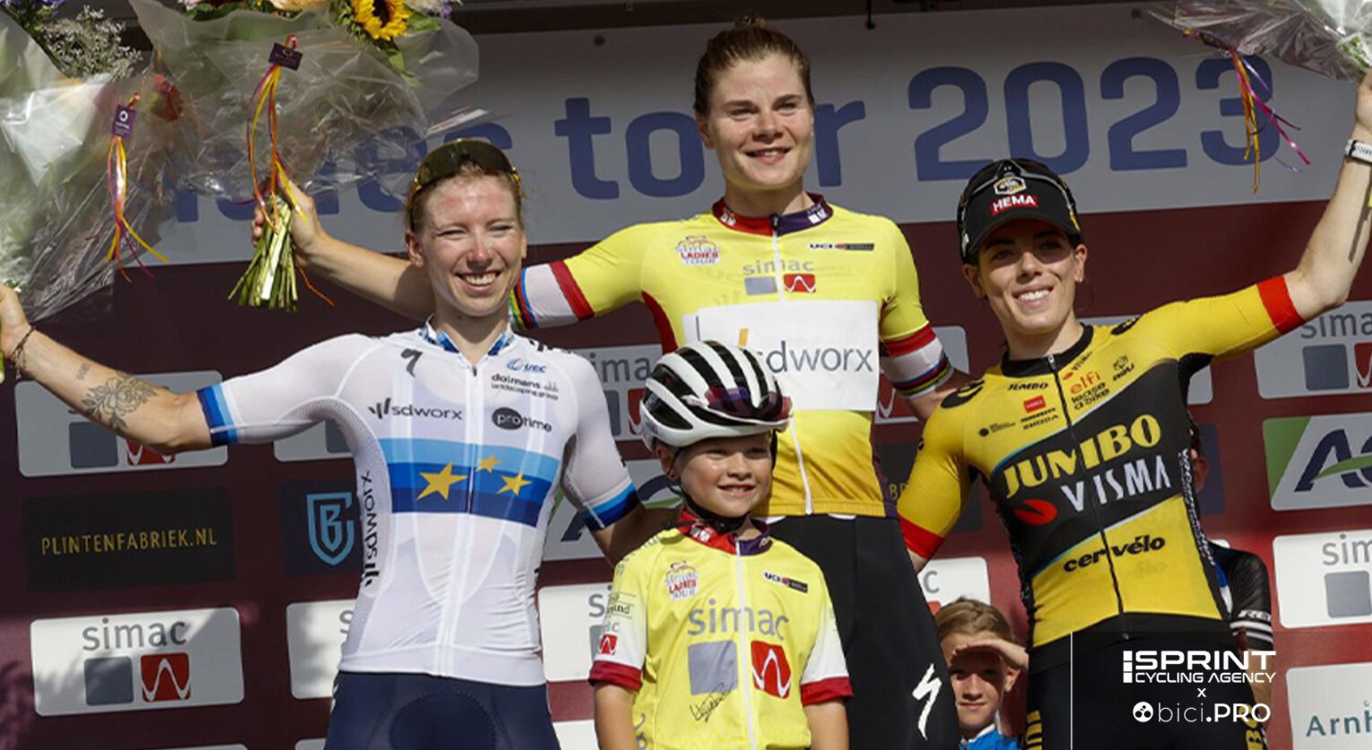 «Non ci pensiamo, non è un obiettivo. Ma semmai raggiungeremo le 60 vittorie, vi prometto che ne parleremo assieme». In una delle solite nostre chiacchierate pre-gara al Giro Donne, Elena Cecchini ce lo aveva detto forse con un pizzico di scaramanzia, benché sapessimo bene che per la sua SD Worx il traguardo fosse assolutamente raggiungibile. La cifra tonda è stata toccata al Simac Ladies Tour con la generale conquistata da Kopecky (in apertura, il podio finale).