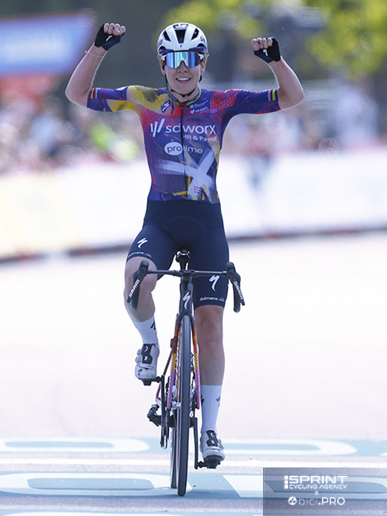 Il momento più spettacolare di Van der Breggen è arrivato nell’ultima frazione, quando ha attaccato due volte, prima in pianura e poi in salita, scollinando con oltre un minuto e mezzo di vantaggio.