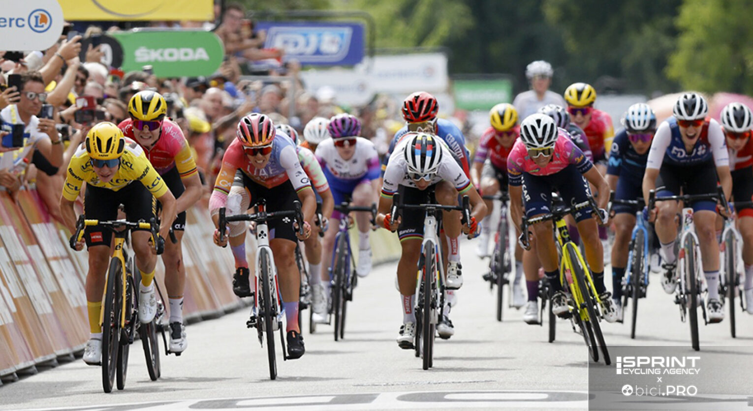 Tanta Italia. L’ordine d’arrivo della sesta tappa del Tour Femmes si tinge ancora tanto del nostro tricolore ma a vincere è ancora quello olandese. Sul traguardo di Rosheim Marianne Vos domina lo sprint su Marta Bastianelli, Lotte Kopecky e davanti ad altre sei italiane. Dal quarto al decimo posto troviamo nell’ordine Balsamo, Persico, Confalonieri, Guazzini, Barbieri e Longo Borghini con la sola Niewiadoma (ottava) a spezzare questa lunga scia azzurra.