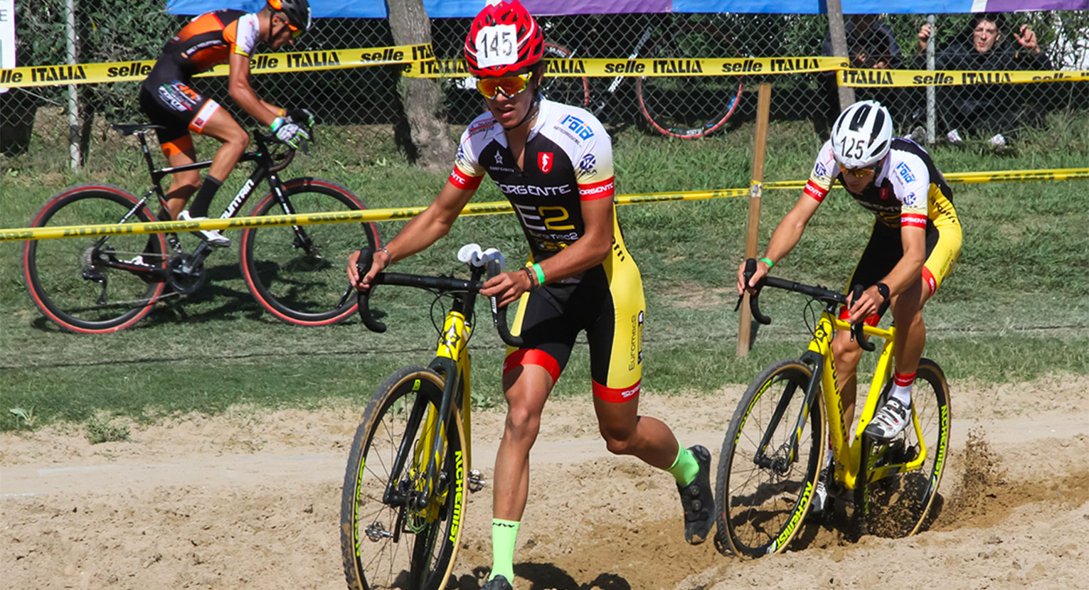 La gara junior maschile è quella che probabilmente ha regalato le maggiori emozioni di tutta la prima giornata a Jesolo, il che fa presagire un Giro d’Italia Ciclocross di categoria estremamente incerto e appassionante. Nelle prime battute di gara si è messo in luce il pugliese Vittorio Carrer (Team Bike Terenzi), particolarmente a suo agio sul fondo sabbioso. Il suo vantaggio ha raggiunto anche i 20”, ma col passare del tempo da dietro sono emersi Eros Cancedda e Gioele Solenne, entrambi della Sorgente Pradipozzo, che hanno via via annullato il gap.