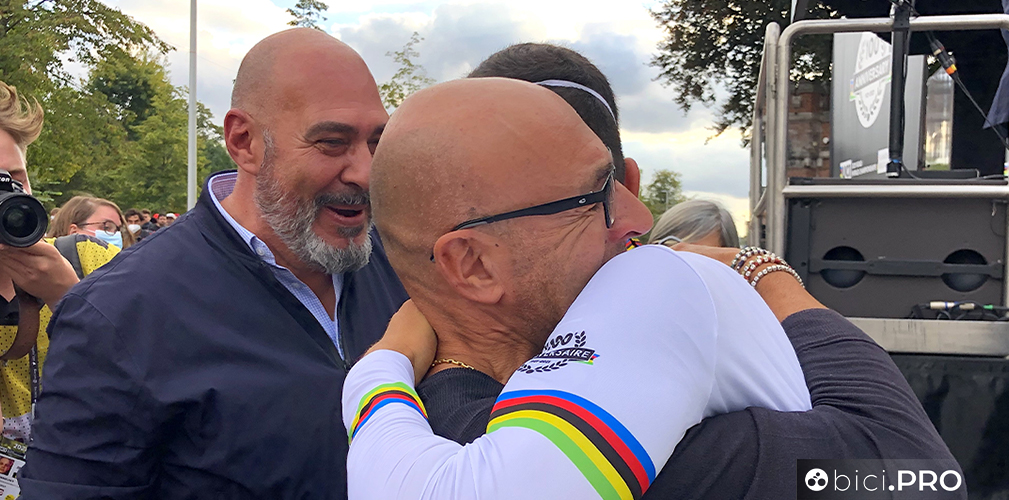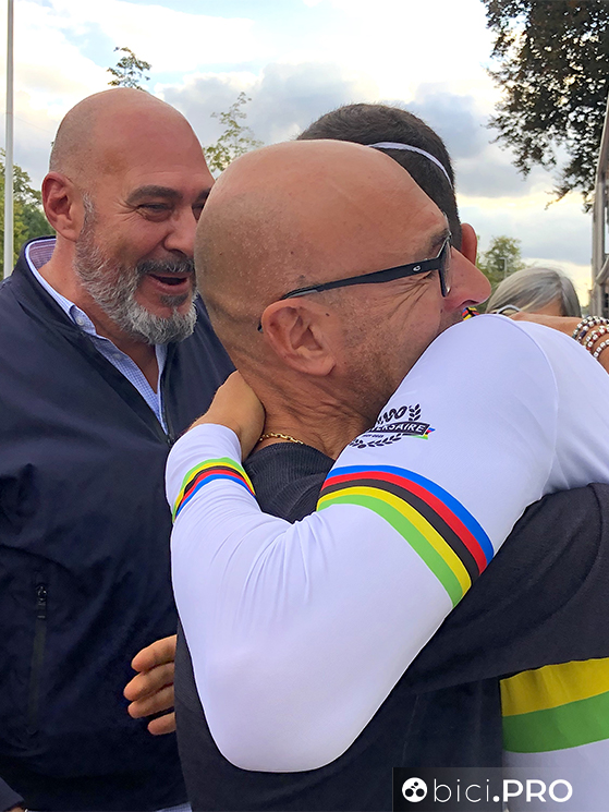 Ma il più commosso è Gianluca Valoti. Il suo diesse alla Colpack Ballan se lo abbraccia, abbraccia anche a noi. Ha la voce tremolante. Così come Rossella Di Leo, la team manager.