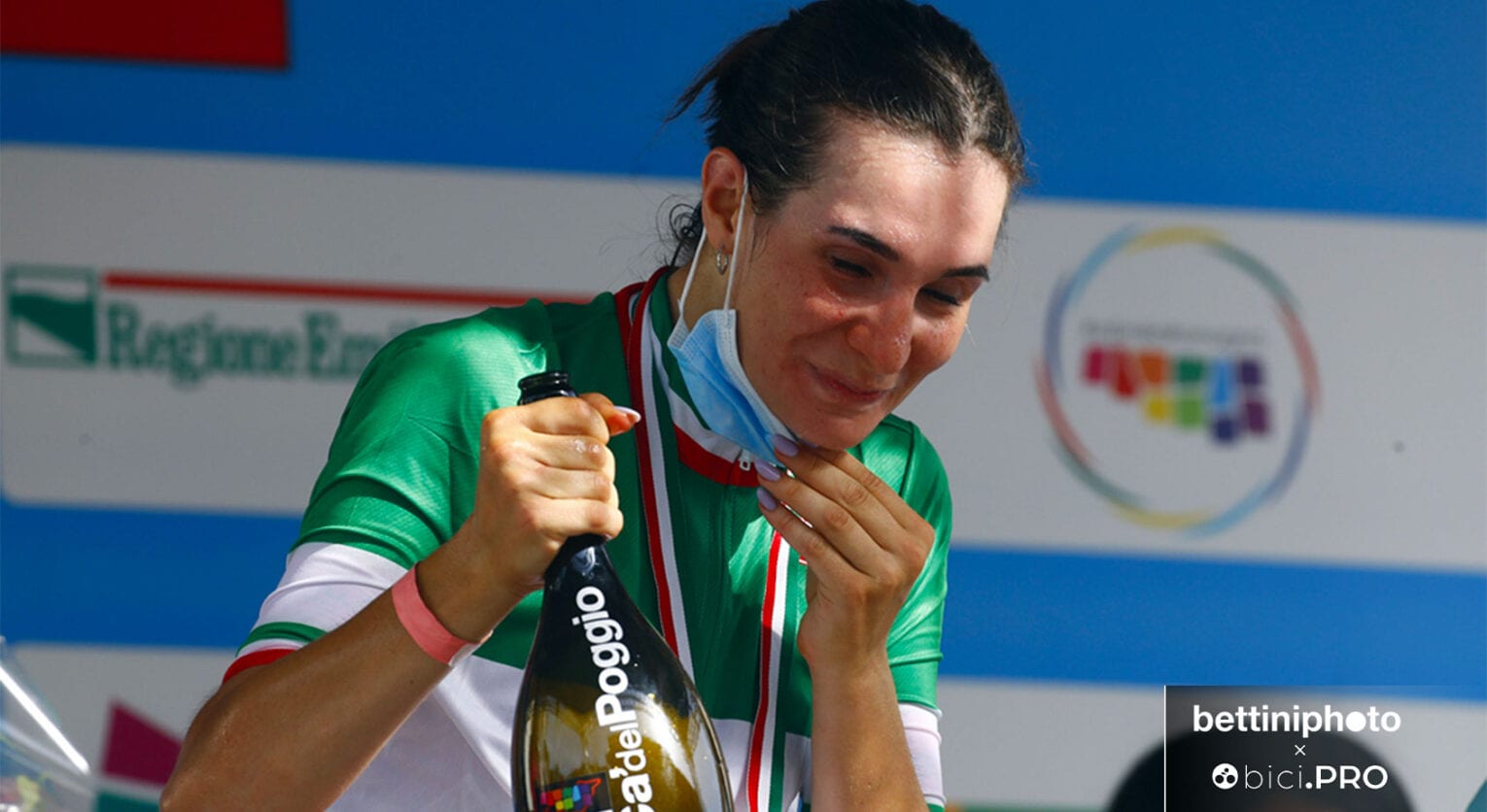 «Oggi ero più tranquilla del solito – dice – non sentivo la gara, non essendo andata alla grande la crono di settimana scorsa. In realtà ero arrivata quarta e la mia compagna Cipressi aveva vinto dandomi 40 secondi. Poi però l’hanno squalificata per aver saltato la prova rapporti e sono arrivata terza. A Faenza non mi aspettavo troppo, però sapevo di avere una buona condizione. Questa crono era leggermente più breve del solito, sono partita forte e poi sono un po’ calata. C’era vento contro e dopo l’intermedio sapevo di essere lì a giocarmela. E visto il grande supporto della nostra squadra, dedico loro questa maglia tricolore, per quello che fanno per noi, tutto quello che ci danno».