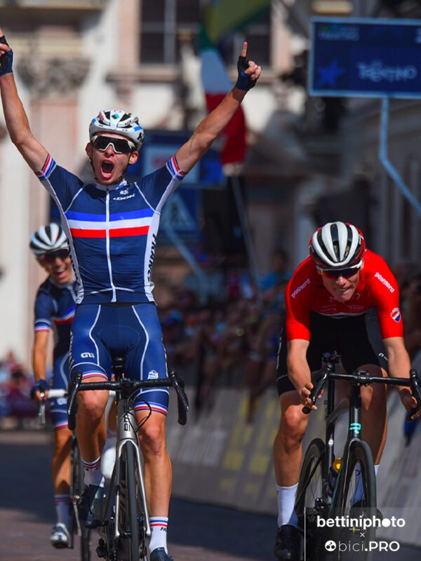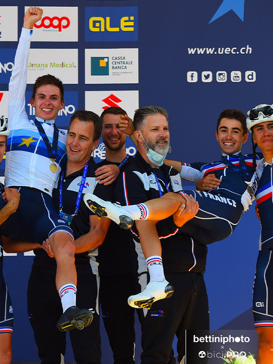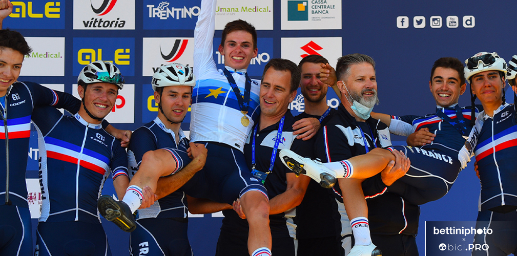 Ci sono bastone e carota da parte del cittì De Candido per gli junior azzurri nella prova in linea degli europei dominata dai francesi che vincono la medaglia d’oro e di bronzo rispettivamente con Romain Gregoire e Lenny Martinez, mettendo nel sacco il norvegese Per Strand Hagenes (argento). A 10” dai tre fuggitivi – scappati sul culmine della salita di Povo, a 9 chilometri dalla fine – chiude il gruppo regolato dal belga Vlad Van Mechelen davanti al nostro Manuel Oioli.