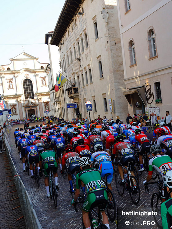 Ecco il momento dell’attacco di Gregoire, con Martinez nella scia. Secondo De Candido gli italiani hanno sbagliato a non seguirli Si corre nel centro di Trento, su fondo in sampietrini