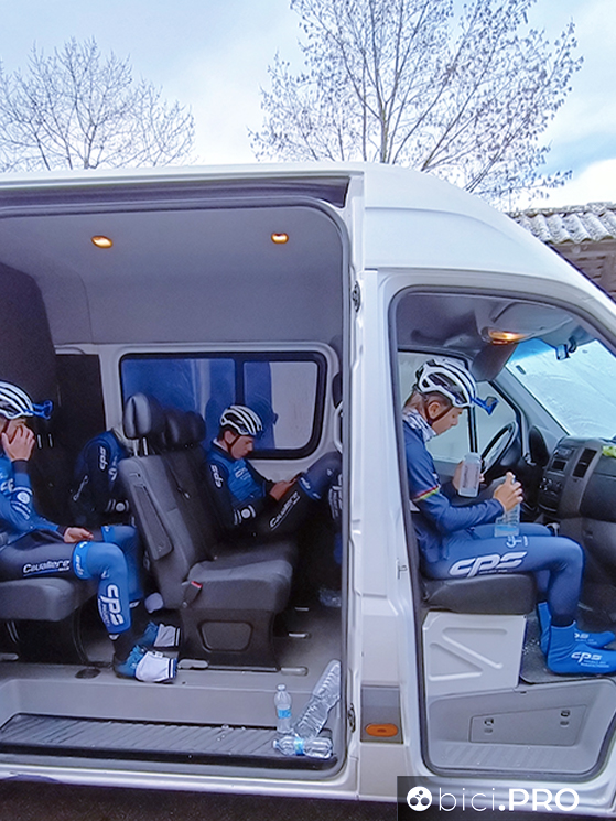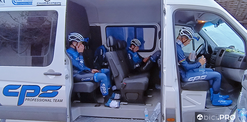 Tutti collaborano. Chi fa la pasta, chi lava i piatti. Mangia prima chi corre, poi agli altri. E questa collaborazione si fa più forte una volta arrivati al ritrovo. Con i quattro che supportano gli altri sei: gli montano i numeri sulle bici e gli fanno persino i massaggi.
