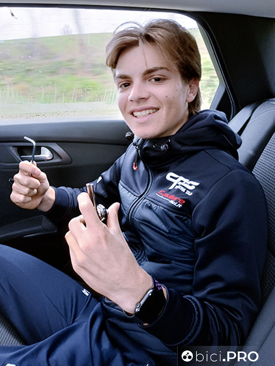 La gara è come da noi. Il ritrovo, la riunione dei diesse richiamata con un urlo dalla giudice. E’ il bello del ciclismo giovanile e genuino. Il CPS Professional Team si piazza proprio in prossimità della riunione dei diesse. Tutti devono passare di lì e tutti notano le bici uguali. «Colnagò! Bon velò», dicono i francesi. Forse più colpiti dal fatto che le bici fossero tutte uguali, piuttosto che dal modello. In Francia ognuno corre con la propria bici.