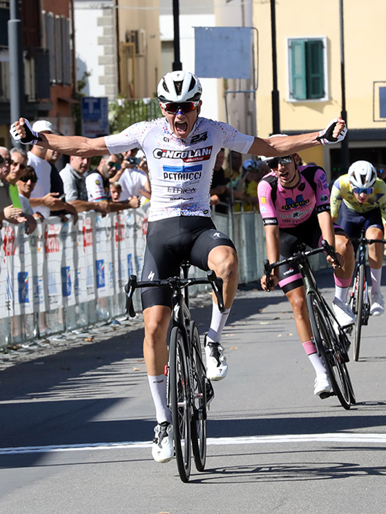 Sulla carta era l’unica frazione dedicata ai velocisti perché il tracciato era totalmente pianeggiante. Si correva in circuito e il finale era particolarmente tortuoso. Avevo detto ai miei ragazzi di leggere la gara e magari seguire l’istinto, la fantasia. Così dopo un traguardo volante, Alessiani ha tirato dritto assieme ad altri due ragazzi prendendo un vantaggio incolmabile per il gruppo. Lui ha vinto la tappa e in pratica ha ipotecato subito la generale. Il giorno successivo ha rivinto e nell’ultima tappa ha gestito il vantaggio e gli attacchi degli avversari.