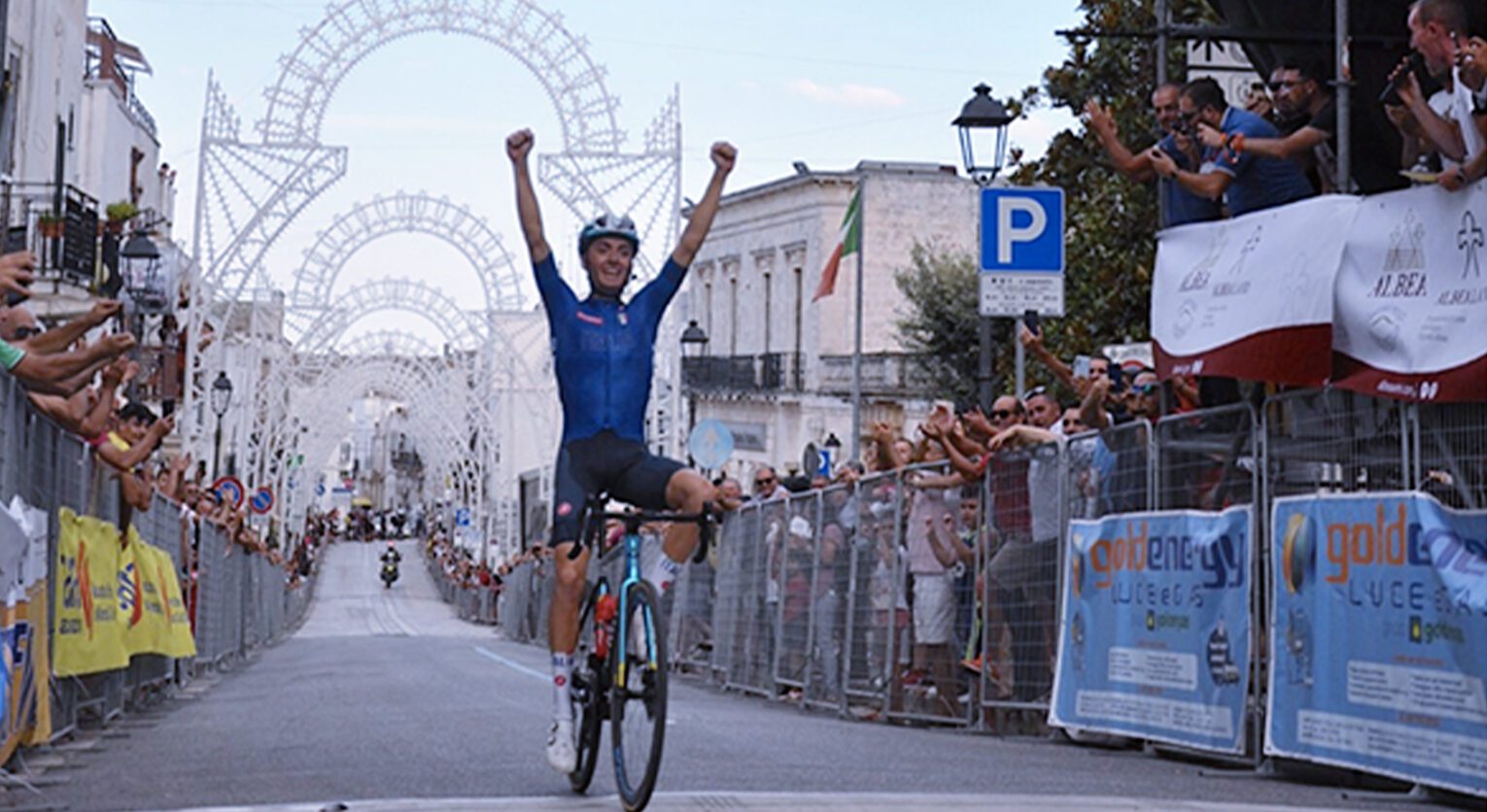 Ma se il 9 lo ha riattaccato, il 10 ha vinto. E lo ha fatto in occasione della seconda corsa del trittico pugliese (Costa dei Trulli, Coppa Messapica e Targa Crocifisso), in quel di Ceglie, paesino bianco sull’Altopiano delle Murge, in provincia di Brindisi. Una classica del dilettantismo che vanta oltre 70 anni di storia e 62 edizioni.