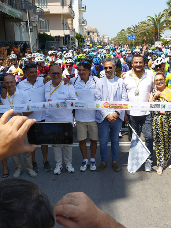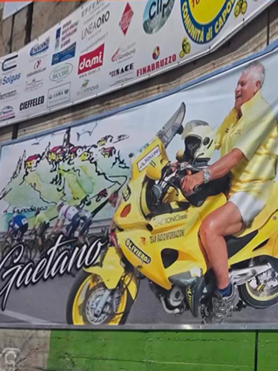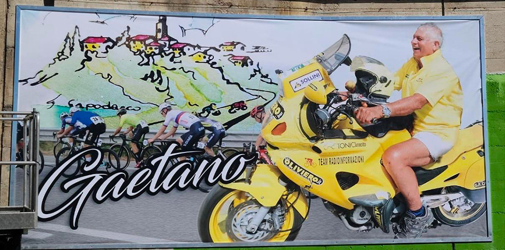Gran Premio Capodarco: la corsa di Gaetano Gazzoli e Adriano Spinozzi, che mai avrebbe pensato di doverla organizzare senza di lui e in così breve tempo. Le scritte sull’asfalto celebravano il vecchio mentore sparito alla fine di maggio. Un murales all’inizio della salita farà per sempre di questa strada il cammino verso il mondo di Gaetano.