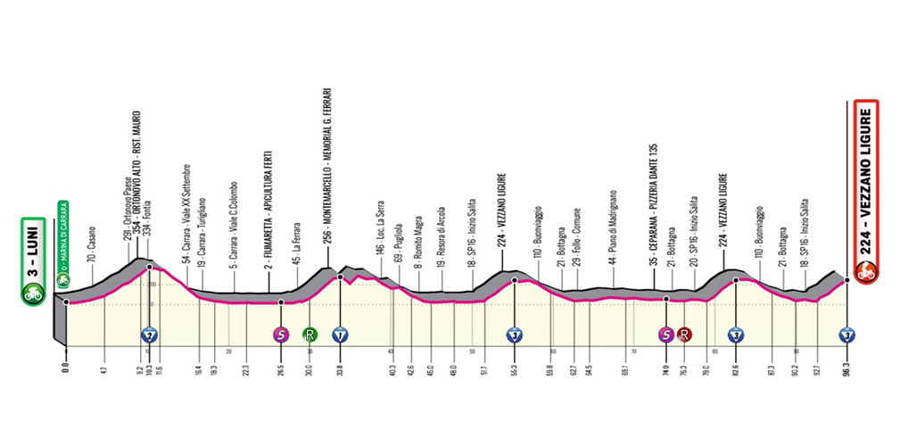 Quella di sabato sarà la giornata dedicata alle due semi tappe, al mattino una chance per i velocisti con la Equi Terme-Marina di Massa. Mentre il pomeriggio spazio agli attaccanti con la Pontremoli-Fivizzano. La frazione conclusiva anche quest’anno terminerà a Terre di Luni dopo 100 chilometri che vedranno il gruppo partire da La Spezia per poi passare dal Parco Nazionale delle Cinque Terre.