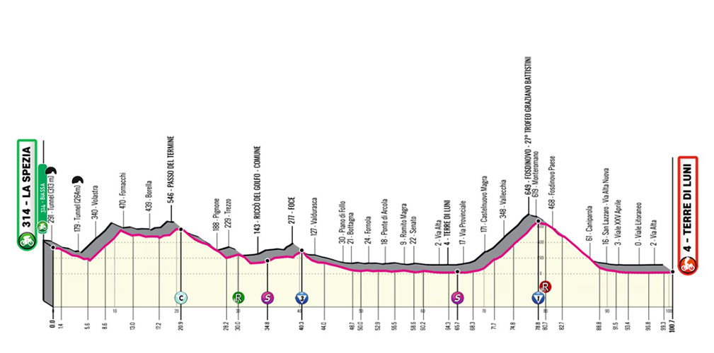 «L’ultima tappa partirà da La Spezia – conclude Alessandro Colò – esattamente dallo stadio dello Spezia Calcio, il Picco. Il gruppo uscirà in direzione Volastra e prenderà la Strada Provinciale 51 e attraverserà il Parco Nazionale delle Cinque Terre. Una frazione dal profilo mosso fin dai primi chilometri che dopo un primo passaggio sotto al traguardo di Terre di Luni scalerà la salita di Fosdinovo. Un’ascesa di 8 chilometri con pendenze, nell’ultimo chilometro, che arrivano anche al 18 per cento. Si scollinerà abbastanza lontani dal traguardo ma la discesa tecnica renderà difficile il rientro».