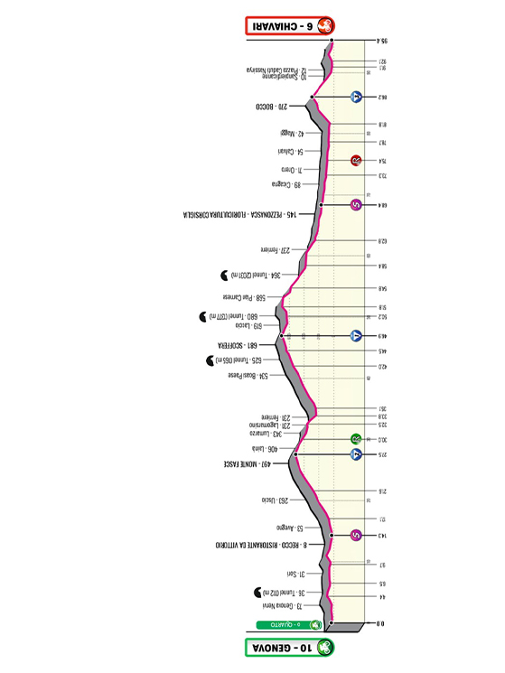 «Si parte subito con una tappa impegnativa con tre GPM – spiega Alessandro Colò – così come fatto lo scorso anno quando Lorenzo Finn e Paul Seixas dimostrarono subito di essere i più forti. Ci aspettiamo uno svolgimento simile. La prima salita, quella di Monte Fasce, arriverà appena usciti da Genova. Una breve discesa porterà il gruppo a imboccare il Passo della Scoffera, salita simbolo della Milano-Rapallo. Da lì una lunga discesa fino ai piedi della salita di Bocco, 3,5 chilometri all’8 per cento che saranno un bel trampolino per provare a fare subito la differenza».