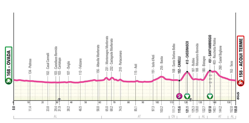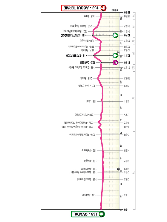 I velocisti saranno protagonisti anche nelle tappe successive dove la corsa rosa under 23 toccherà i comuni di Gavi e Acqui Terme, entrando in Piemonte nella quinta frazione. Qualche insidia ma lontana dall’arrivo permetterà di riordinare le idee e presentarsi pronti allo sprint.
