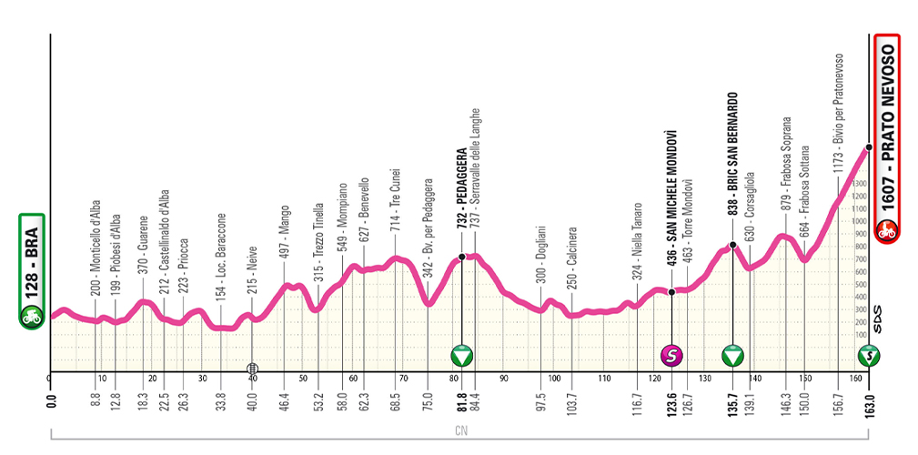 Il Giro Next Gen, entrato in Piemonte, si appresta a far vivere l’atto conclusivo con due atti dedicati agli scalatori. La tappa regina è la settima, da Bra a Prato Nevoso. In 163 chilometri si affrontano 4.100 metri di dislivello. I GPM di giornata saranno tre ma la strada guarderà spesso all’insù.