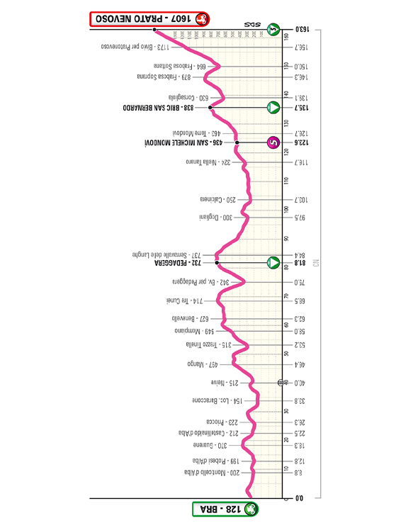 «Una tappa davvero esigente – dice Scirea – ma non impossibile. Qualche passista-scalatore potrà cercare di contenere i distacchi per poi giocarsi il tutto per tutto l’ultimo giorno. Si prospetta una giornata da “uno contro uno” e conteranno le gambe ma anche la testa. La salita a Prato Nevoso è bella ma non eccessivamente dura, ogni attacco dovrà essere ben ponderato perché il rischio è di pagare un conto salato».