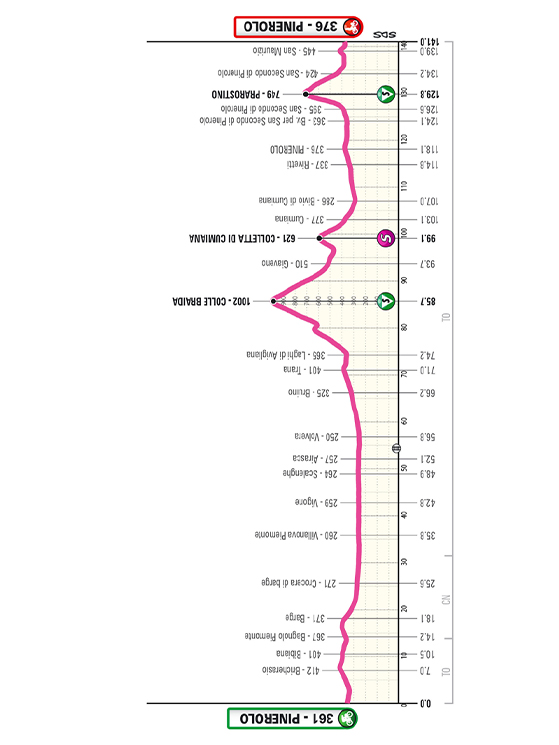 «Che dire – conclude – non ci sarà tempo per rilassarsi fino alla fine, anche gli ultimi due chilometri offrono uno spunto interessante con lo strappo finale dentro Pinerolo che può dire ancora qualcosa. Penso sia una tappa finale esigente, adatta a corridori potenti e con buone gambe anche su salite di breve durata. Uno scatto nel momento giusto sarà in grado di cambiare tutto».